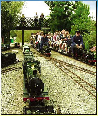 Award-winning railway adventure in Eastbourne. Ride for nearly a mile behind scale coal-fired miniature steam locomotives around a 5 acre lake. Fun or relaxation all day. Adventure playground, indoor model railways, garden railway, steam or diesel train journeys, lineside walk, picnic areas, maze, Thomas the Tank Engine souvenir/gift shop, café and prize-winning tea gardens. Free parking. No dogs.